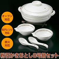 オーブン・電子レンジ・直火対応オーソドックスな萬古焼の土鍋。粉引かきおとし8号鍋セット12-308-38 ひとつの大鍋を囲んで家族みんなで賑やかに過ごせる温かいギフト。粉引おとし8号鍋セット、粉引おとし9号鍋揃はオーブン・電子レンジ・直火対応でとっても便利な土鍋のセットです!サイズ鍋:直径:25×29.5×14cmとんすい:直径:13.5×15×5cm井ゲタ:20×20×1.5cmレンゲの長さ:15cm(化粧箱:27×41.5×13cm)重量約2400g素材・材質鍋:耐熱陶器、とんすい・レンゲ:陶器、井ゲタ:木仕様【容量】鍋:約1600ml、とんすい:約240ml、オーブン・電子レンジ・直火対応セット内容鍋×1、とんすい×2、レンゲ×2、井ゲタ×1製造国日本 Supported by 楽天 |
